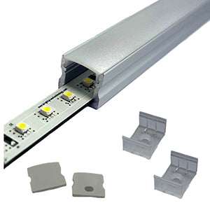 Aluminium profile designed for rigid or flexible PCB. FK-002 is a medium depth profile and comes complete with end caps and mounting clips.